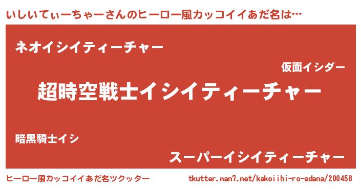 | 女子向けラノベタイトル風あだ名 | 『いしいてぃーちゃーなんてお断りですっ。』 |