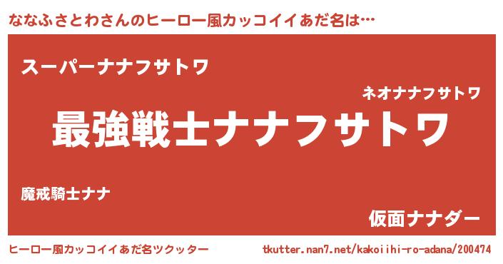 | 男性向けラノベタイトル風あだ名 | 『Re:ななふさとわから始める異世界生活』 |
