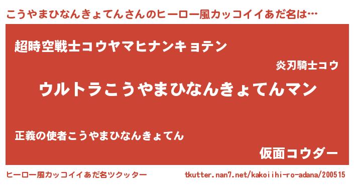 | 欧米人風あだ名 | 『こうやまひなんきょてんクリステル』 |