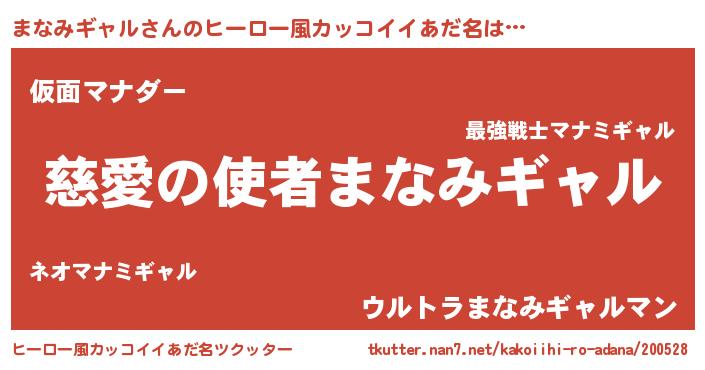 まなみギャルさんのヒーロー風カッコイイあだ名をツクッター!