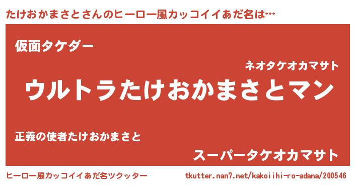 | ファンタジー風あだ名 | 『エターナルタケオカマサトー』 |