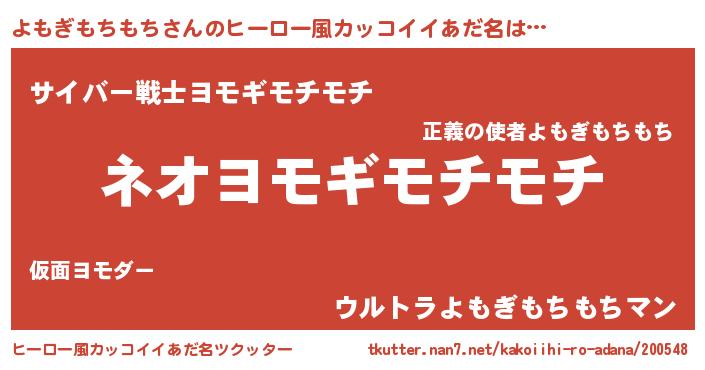 | 男性向けラノベタイトル風あだ名 | 『ヨモギモチモチスレイヤー』 |