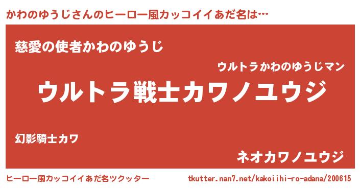 | ヘコむあだ名 | 『かわのゆうじ(苦笑)』『酢こんぶ』 |