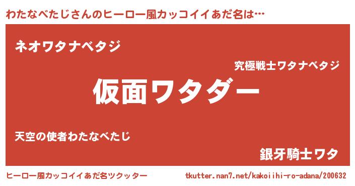 | 意味不明あだ名 | 『住所不定無職わたなべたじ(8歳)』 |