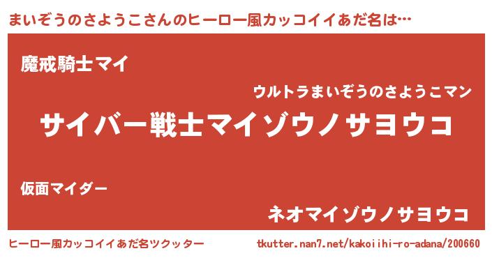 | 意味不明あだ名 | 『自称まいぞうのさようこ』 |