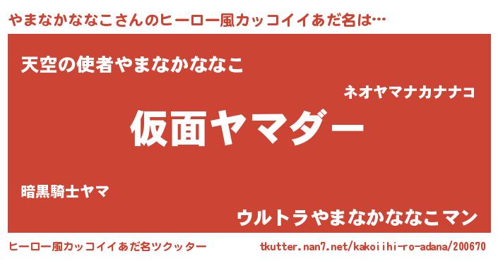 | 意味不明あだ名 | 『住所不定無職やまなかななこ(89歳)』 |
