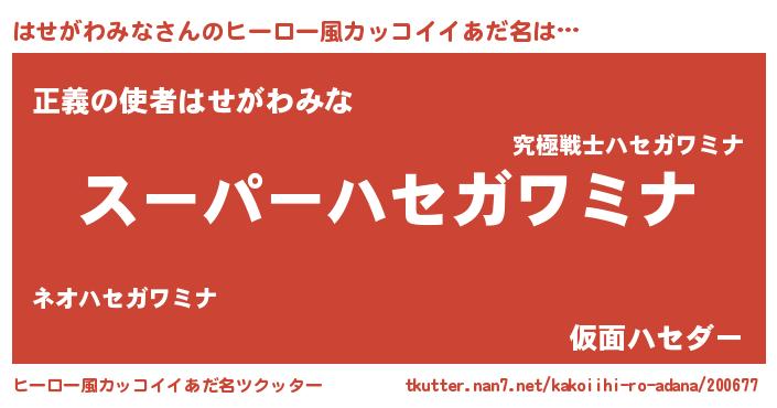 | 男性向けラノベタイトル風あだ名 | 『転生したらはせがわみなだった件』 |