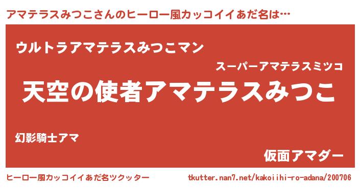 | 男性向けラノベタイトル風あだ名 | 『アマテラスみつこに滅ぼされるだけの簡単なお仕事です』 |