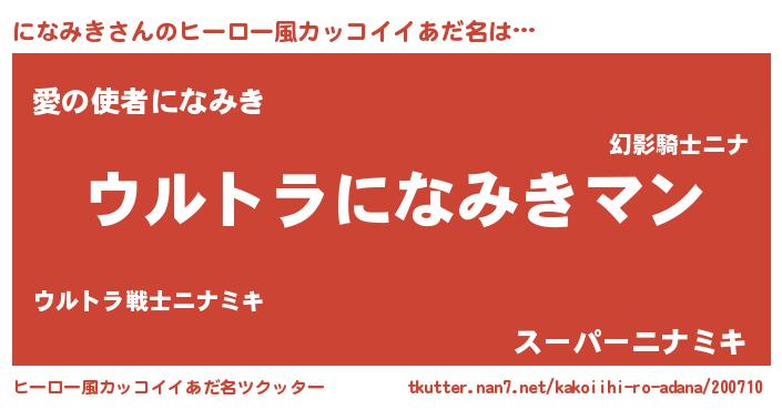 | 意味不明あだ名 | 『になみきフォーエバー』 |