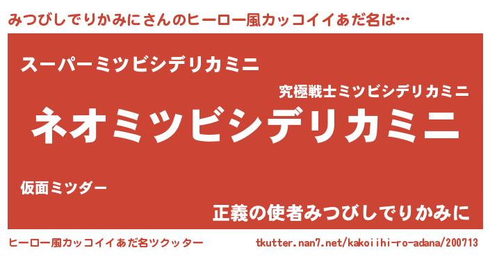 | 意味不明あだ名 | 『永久保存みつびしでりかみに』 |