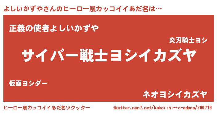 | 男性向けラノベタイトル風あだ名 | 『Re:よしいかずやから始める異世界生活』 |