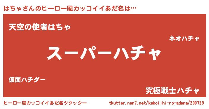 | 胡散臭い通販商品みたいなあだ名 | 『億万長者になれる霊験あらたかなお札…その名も「はちゃ」』 |