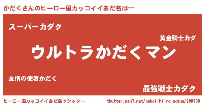 | 男性向けラノベタイトル風あだ名 | 『かだくに滅ぼされるだけの簡単なお仕事です』 |