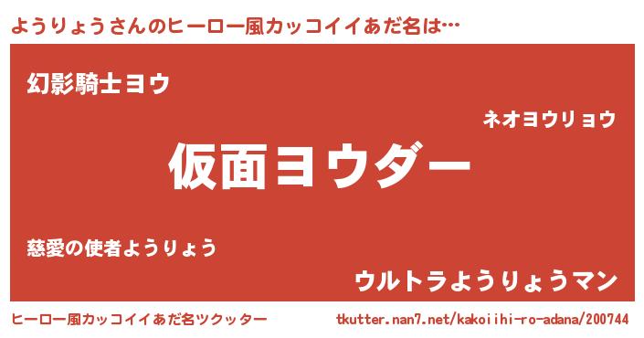 | 男性向けラノベタイトル風あだ名 | 『魔弾の王とようりょう』 |