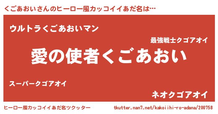 | ポケモン風あだ名 | 『クックウザ』『クゴアダネ』 |