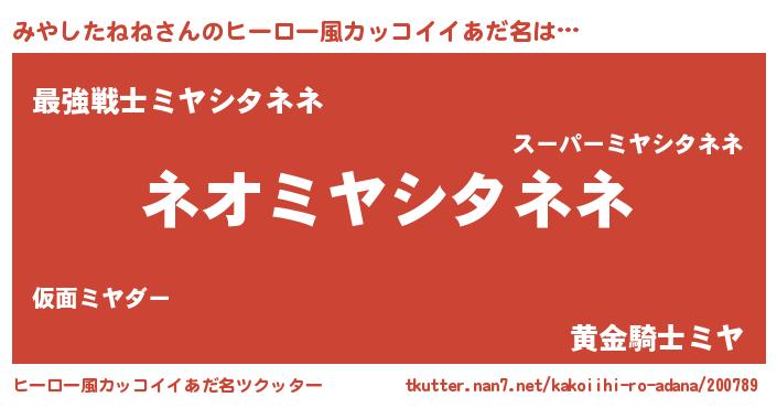 | 意味不明あだ名 | 『永久保存みやしたねね』 |