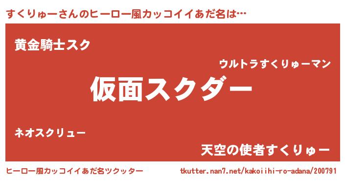 | 意味不明あだ名 | 『住所不定無職すくりゅー(39歳)』 |