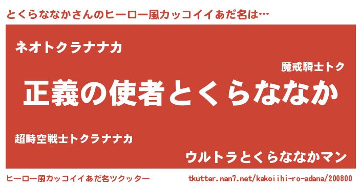 | 女子向けラノベタイトル風あだ名 | 『とくらななか夫妻のなれそめ』 |