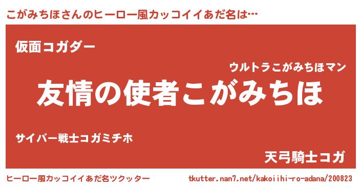 | 女子向けラノベタイトル風あだ名 | 『こがみちほ恋絵巻』 |