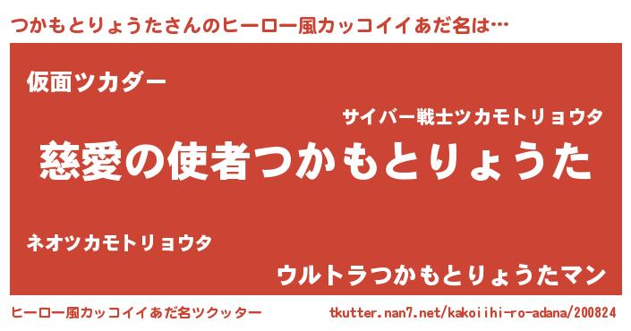 | 男性向けラノベタイトル風あだ名 | 『つかもとりょうたに滅ぼされるだけの簡単なお仕事です』 |