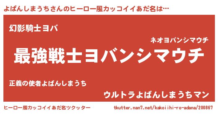 | 意味不明あだ名 | 『自称よばんしまうち』 |