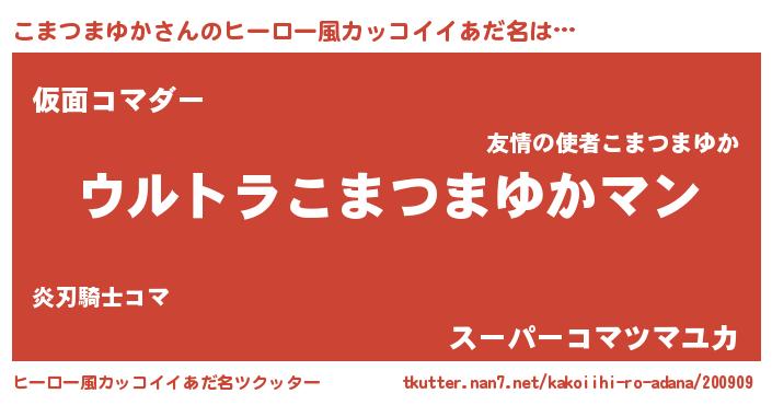 | 男性向けラノベタイトル風あだ名 | 『うちの娘の為ならば、俺はもしかしたらこまつまゆかも倒せるかもしれない。』 |