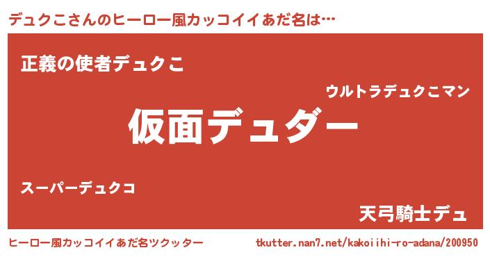 | 意味不明あだ名 | 『住所不定無職デュクこ(2歳)』 |