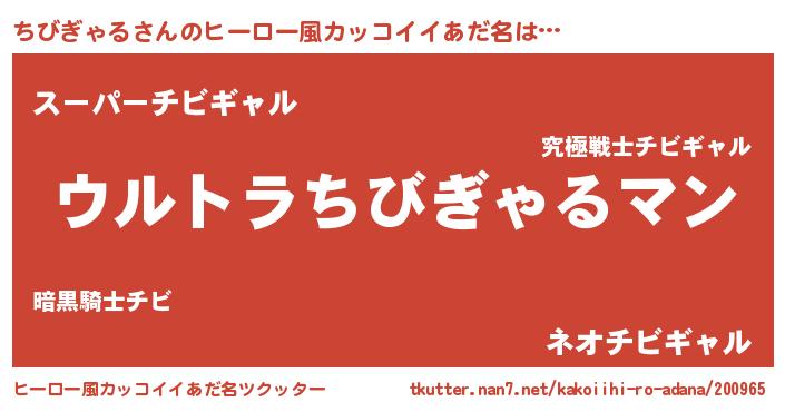 | 男性向けラノベタイトル風あだ名 | 『うちの娘の為ならば、俺はもしかしたらちびぎゃるも倒せるかもしれない。』 |