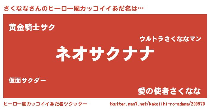 | 欧米人風あだ名 | 『さくなな・ステッグマイヤー』 |
