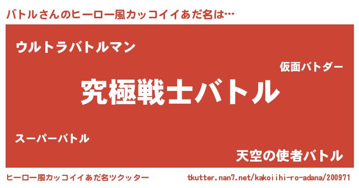 | 男性向けラノベタイトル風あだ名 | 『バトル~年齢イコール彼女いない歴の魔法使い~』 |