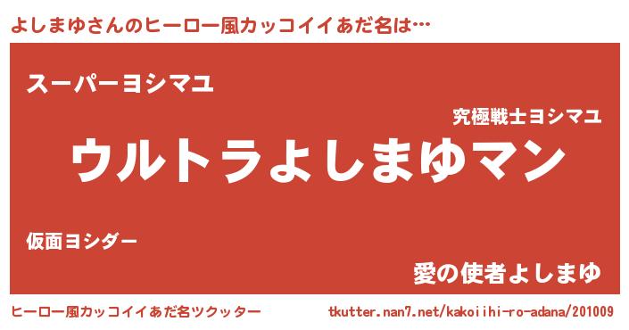 よしまゆさんのヒーロー風カッコイイあだ名をツクッター!