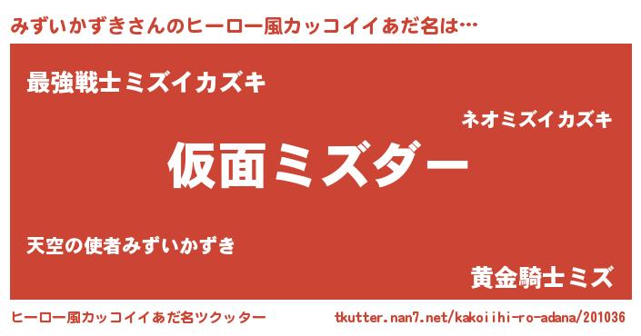 | 男性向けラノベタイトル風あだ名 | 『みずいかずきに滅ぼされるだけの簡単なお仕事です』 |