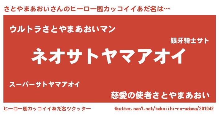 | 男性向けラノベタイトル風あだ名 | 『さとやまあおい~年齢イコール彼女いない歴の魔法使い~』 |