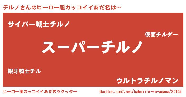 | 男性向けラノベタイトル風あだ名 | 『チルノの憂鬱』『魔法科高校のチルノ』 |