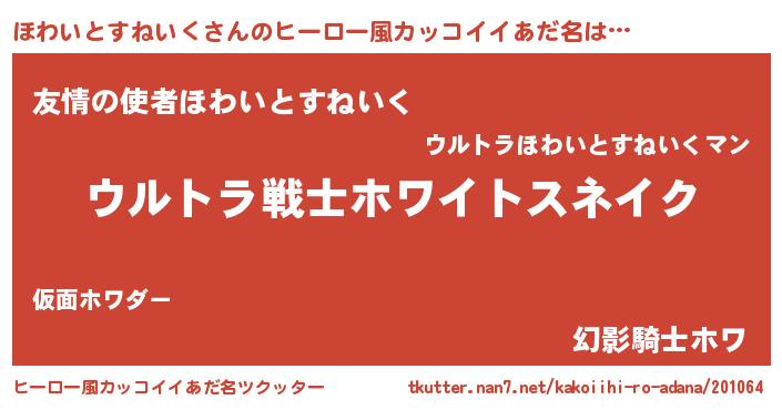 | 女子向けラノベタイトル風あだ名 | 『ほわいとすねいくなんてお断りですっ。』 |