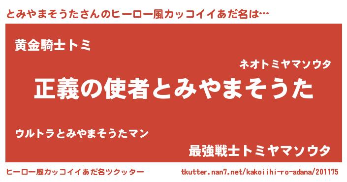 | 男性向けラノベタイトル風あだ名 | 『おまえをオタクにしてやるから、俺をとみやまそうたにしてくれ! 』 |
