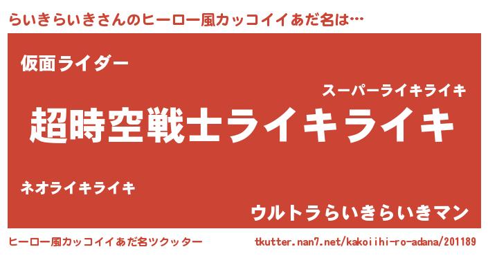 | 料理風あだ名 | 『らいきらいきごはん』 |