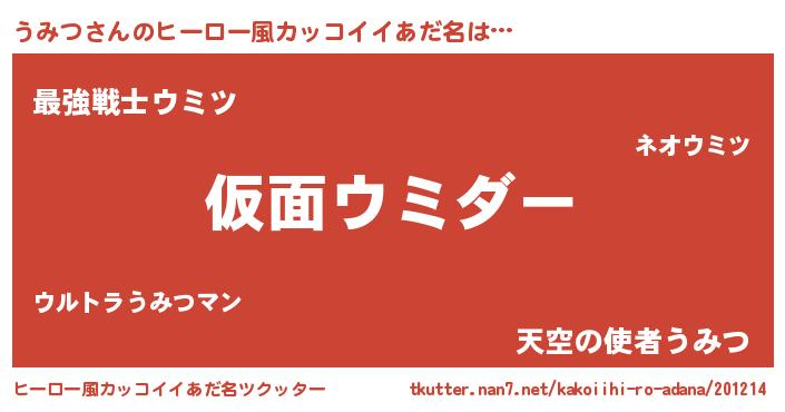 | 男性向けラノベタイトル風あだ名 | 『この素晴らしい世界にうみつを!』 |