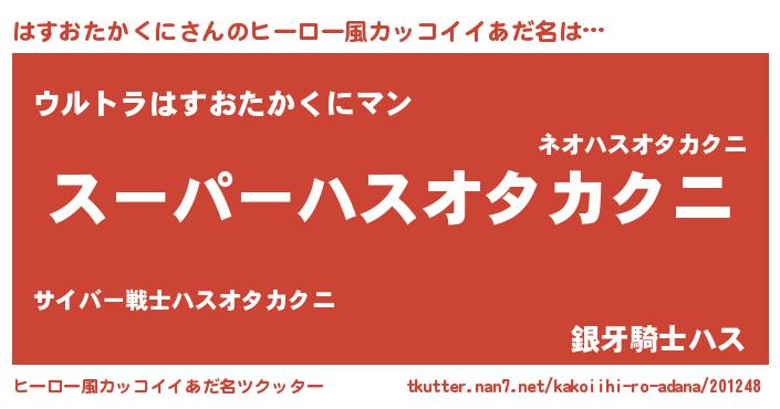 | 胡散臭い通販商品みたいなあだ名 | 『億万長者になれるブレスレット…その名も「はすおたかくに」』 |