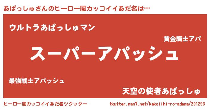 | 女子向けラノベタイトル風あだ名 | 『(仮)あぱっしゅのやんごとなき事情』 |