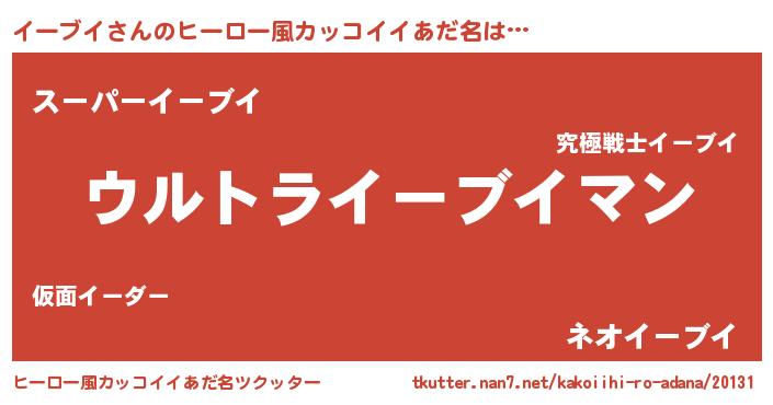 | 女子向けラノベタイトル風あだ名 | 『イーブイの雑貨屋さん』 |