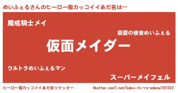 | ヘコむあだ名 | 『めいを』『めいふぇ~』『なまこ酢』 |