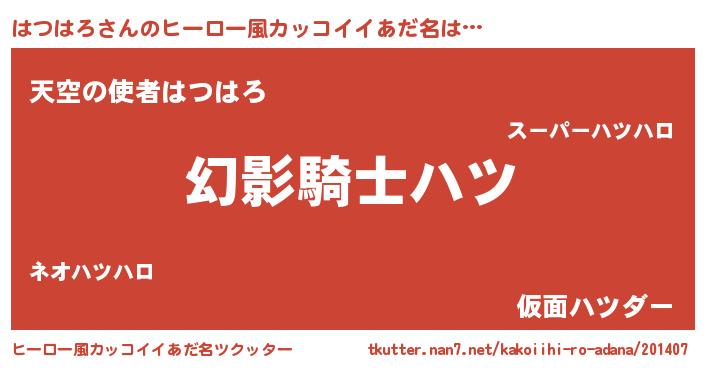 | 男性向けラノベタイトル風あだ名 | 『はつはろの嫁は女の子じゃないと思った?』 |