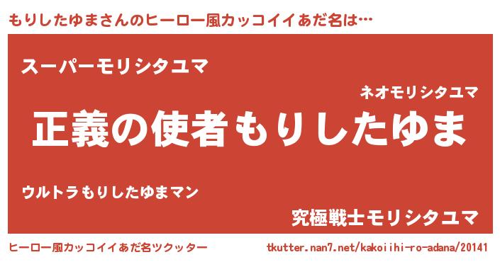 | 男性向けラノベタイトル風あだ名 | 『おまえをオタクにしてやるから、俺をもりしたゆまにしてくれ! 』 |