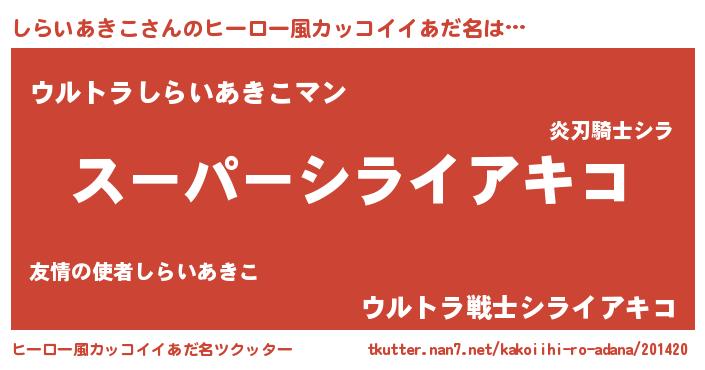 | 意味不明あだ名 | 『ペロリンしらいあきこ』 |