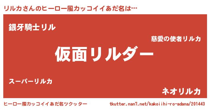 | 男性向けラノベタイトル風あだ名 | 『この素晴らしい世界にリルカを!』 |