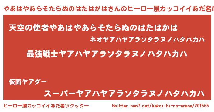 | 意味不明あだ名 | 『自称やあはやあらそたらぬのはたはかは』 |