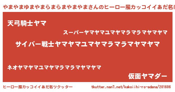 | 男性向けラノベタイトル風あだ名 | 『転生したらやまやまゆまやまらまらまやまやまだった件』 |