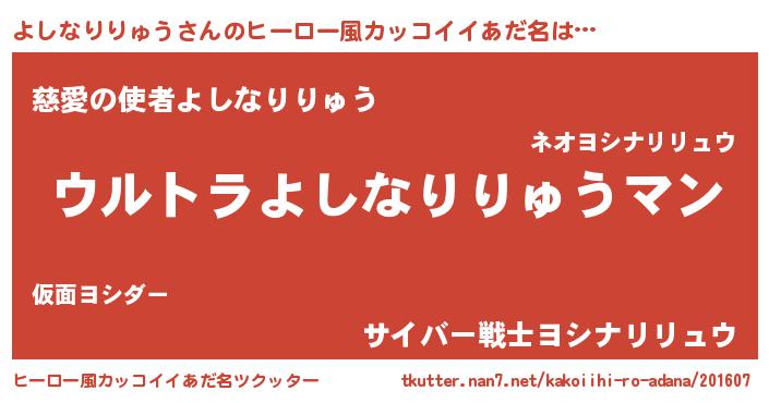| 欧米人風あだ名 | 『よしなりりゅうクリステル』 |