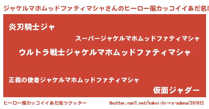 | 男性向けラノベタイトル風あだ名 | 『魔法科高校のジャケルマホムッドファティマシャ』 |